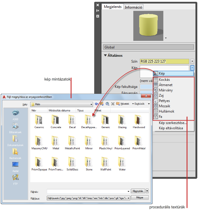 Textúrát rendelhet egy anyagszínhez.