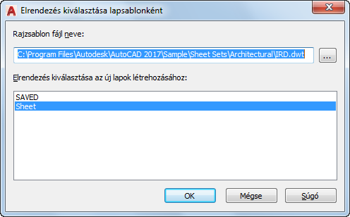 Megadja a rajzsablonfájl elérési útvonalát és nevét, amelyet az új lapok létrehozásához fog használni.