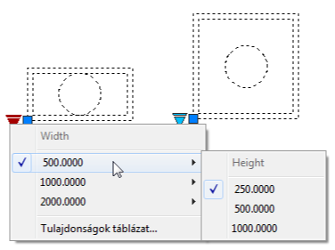 Ha egy dinamikus blokkreferenciában a paraméterértékek megegyeznek a keresési táblázat valamelyik sorában szereplő bemeneti tulajdonságértékekkel, a program a vonatkozó keresési tulajdonságértékeket a blokkreferenciához rendeli. A keresési tulajdonságokat és értékeket a program a Tulajdonságok palettán, a Felhasználói területen jeleníti meg.