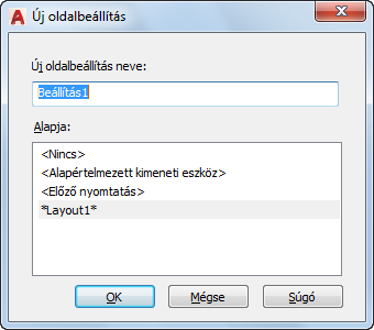 Megadja az új oldalbeállításhoz alapként használni kívánt oldalbeállítást. Amikor az OK gombra kattint, megjelenik az Oldalbeállítás párbeszédpanel a kiválasztott oldalbeállítás beállításaival, amelyeket igény szerint módosíthat.