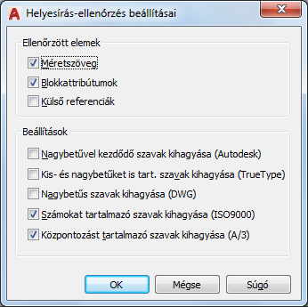 Speciális szövegopciókat ad meg, amelyeket a program a rajzban ellenőrizni fog.