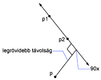 Meghatározza a legrövidebb távolságot a p pont és a p1, p2 ponton áthaladó egyenes között.