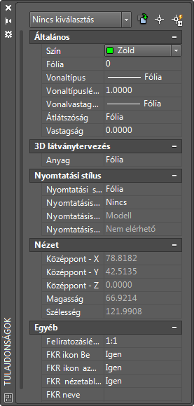 Ha nincs objektum kijelölve, akkor a fent kiemelt legördülő listák a rajz aktuális beállításait jelenítik meg. Ha kijelöl egy objektumot, akkor a legördülő listák annak az objektumnak a tulajdonságbeállításait fogják megjeleníteni.
