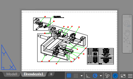 - A rajz nyomtatáshoz végzett előkészítéséhez váltson papírtérre. Itt különböző elrendezéseket állíthat be címpecsétekkel és megjegyzésekkel; és mindegyik elrendezésen elrendezési nézetablakokat hozhat létre, amelyek a modelltér különböző nézeteit jelenítik meg. Az elrendezési nézetablakokban a papírtérhez képest léptékezi a modelltérbeli nézeteket. A papírtérben egy mértékegység a papírlapon mért tényleges távolságot jelzi, attól függően, hogy az oldalbeállításban millimétert vagy hüvelyket adott-e meg.