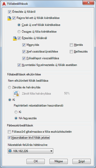 Ha xrefek csatolásakor vagy újrabetöltésekor vannak új fóliák, akkor új fólia értesítést jelenít meg. (LAYERNOTIFY=4)