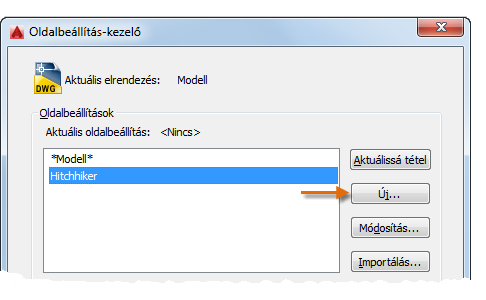 Az Oldalbeállítás-kezelő megnyitásához kattintson a jobb gombbal a Modell lapra vagy egy elrendezési lapra, majd válassza az Oldalbeállítás-kezelő lehetőséget. A parancs a következő: OLDALBEÁLL.