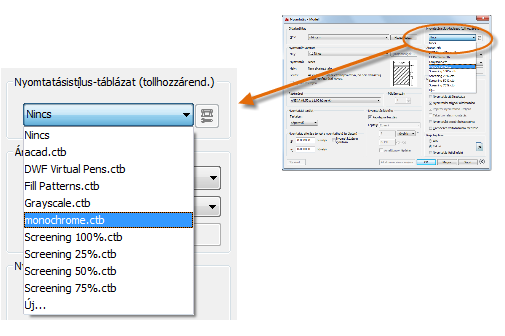 A nyomtatásistílus-táblázat információkat biztosít a színek feldolgozásáról. A monitoron szépen megjelenő színek nem feltétlenül megfelelőek egy PDF-fájlhoz vagy nyomtatáshoz. Például létrehozhatja a rajzot színesen, de a kimenetet beállíthatja monokrómra. A következő módon adhatja meg a monokróm kimenetet: