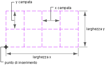 | Creare il layout della griglia con campate a spaziatura uniforme lungo la direzione X | Espandere Asse X, selezionare Spaziatura uniforme in Tipo di layout, quindi immettere un valore in Numero di campate. |