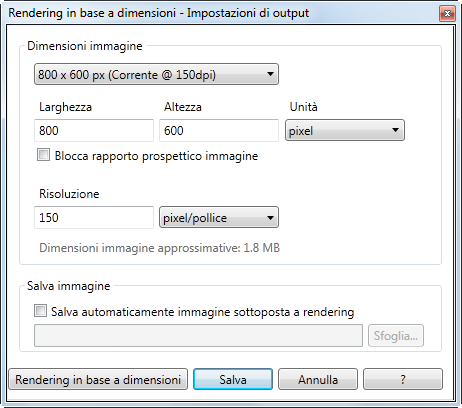 Imposta la risoluzione di output per l'immagine sottoposta a rendering.