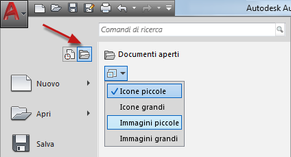 1. Fare clic sul pulsante del menu dell'applicazione , quindi sull'icona Documenti aperti.