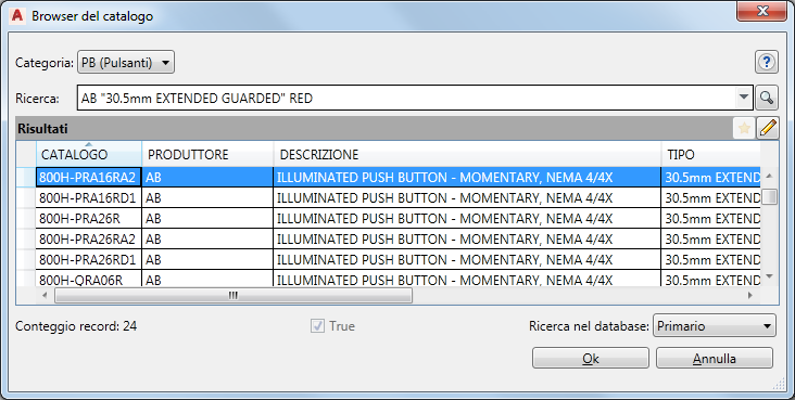 Nota: Gli elementi di assemblaggio secondario, così come sono definiti da un valore ELENCOASSEMBLAGGIO, non vengono inclusi nei risultati della ricerca. Utilizzare la modalità di modifica del Browser del catalogo per visualizzare e modificare gli elementi di assemblaggio secondario.