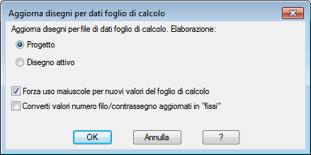Specificare di importare i dati del foglio di lavoro per il disegno corrente o il progetto.