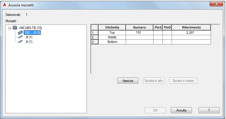 Per spostare un morsetto da un livello ad un altro, selezionare la riga e fare clic su Sposta in alto o Sposta in basso.