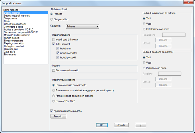 Genera un rapporto estraendo le informazioni dai componenti dello schema e dal cablaggio.