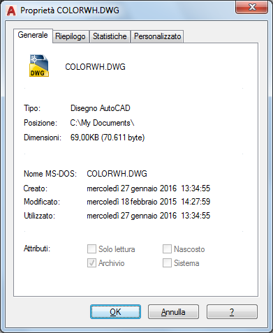 Visualizza informazioni di sola lettura sul file di disegno, ricavate dal sistema operativo.
