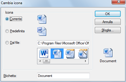 Consente di specificare un'icona da un file con estensione EXE, DLL e ICO.