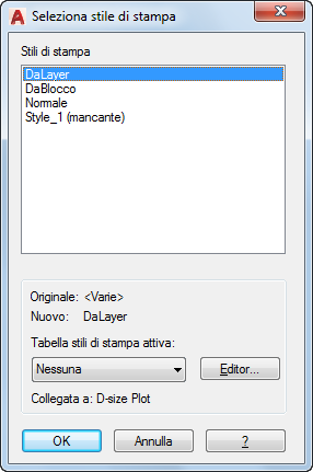 Imposta la tabella stili di stampa assegnata al disegno corrente. Una tabella stili di stampa contiene le definizioni degli stili.