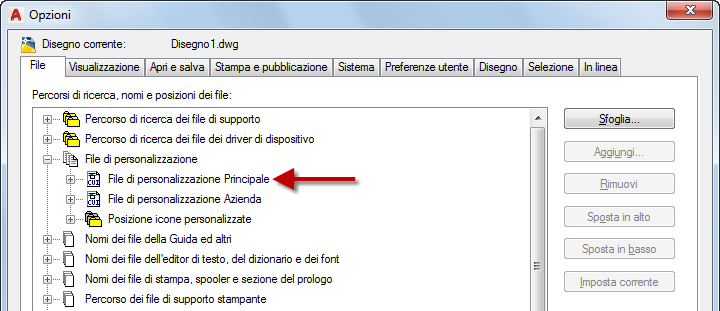 Le modifiche apportate ai profili utente vengono memorizzate nel Registro di sistema di Windows e sono incluse nella migrazione. Nota: Non disponibile in AutoCAD LT.