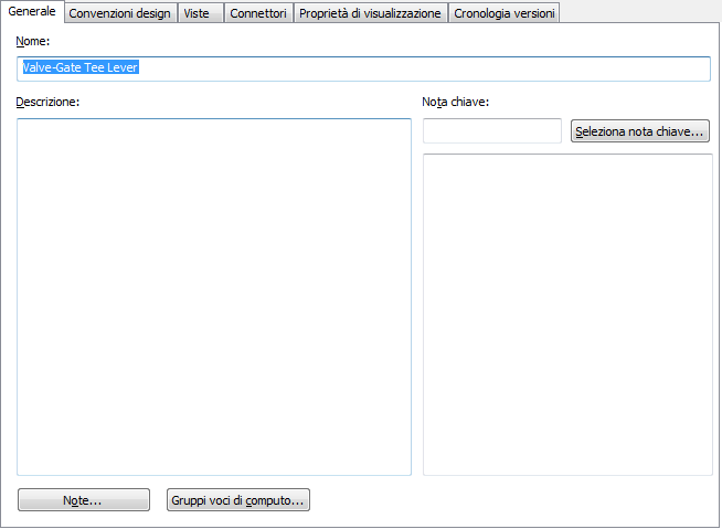 Le proprietà dello stile generali includono nome, descrizione e note. È possibile utilizzare tali proprietà per assegnare dati del gruppo di voci di computo ad oggetti quali parti multivista, a cui in genere sono associati computi.