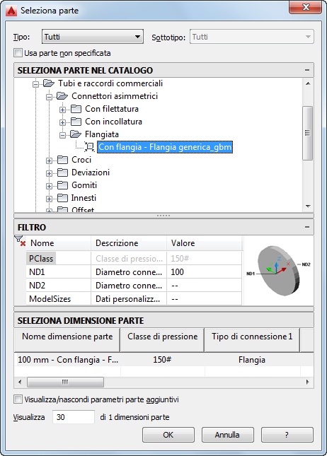 - Nella finestra di dialogo Seleziona parte, scegliere una parte dal catalogo.
