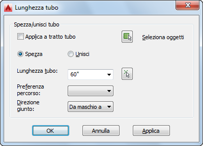 | Spezzare un segmento | Selezionare Spezza e immettere un valore in Lunghezza tubo. È inoltre possibile fare clic su |