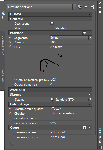 Nel riquadro proprietà verranno inoltre visualizzati gli elementi seguenti: