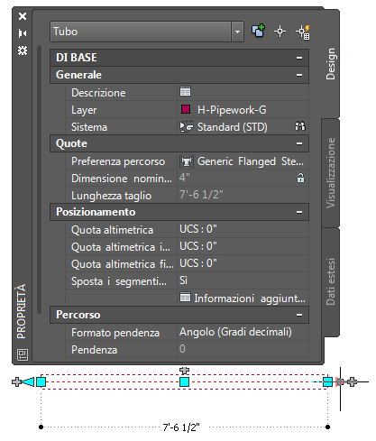 La lunghezza di un segmento di tubo viene modellata in modo accurato mediante giunti separati. Nel riquadro proprietà, la lunghezza di taglio è la lunghezza effettiva del tubo e include i valori di profondità necessari per la connessione delle flange.