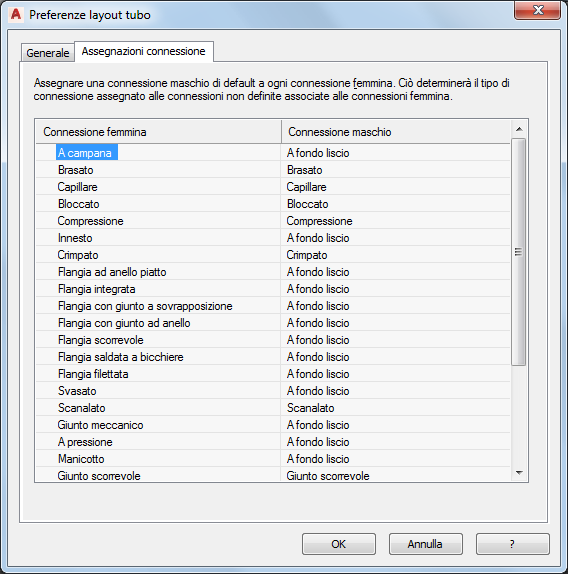 - Nella finestra di dialogo Preferenze layout tubo, fare clic sulla scheda Assegnazioni connessione.