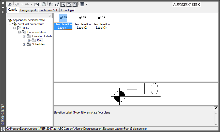 Il contenuto AEC (Architectural, Engineering and Construction, dati di architettura, progettazione e costruzione) è costituito da disegni, simboli, stili di oggetto e routine di annotazione che è possibile aggiungere ai disegni per la progettazione e la documentazione del progetto. È possibile creare uno strumento in una tavolozza degli strumenti utilizzando il contenuto AEC predefinito disponibile in DesignCenter. In DesignCenter è anche possibile creare strumenti dai blocchi, ma le opzioni sono leggermente differenti.