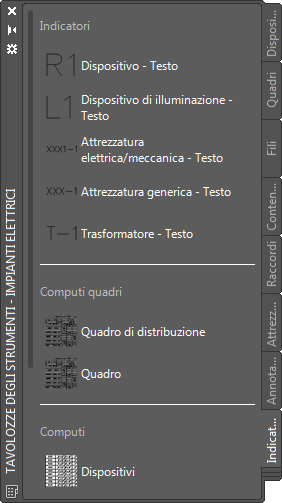 5. Nel set di tavolozze degli strumenti Impianti elettrici fare clic sulla tavolozza Indicatori e computi.