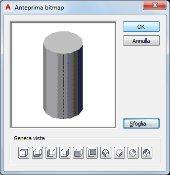 Per generare un'immagine di anteprima della parte multivista parametrica al fine di facilitare la selezione delle parti, attenersi alla procedura descritta di seguito. Nel Generatore di contenuti viene creata un'immagine di anteprima basata su una direzione vista specificata. È possibile selezionare una delle dieci direzioni di visualizzazione standard di AutoCAD® per visualizzare il modello: alto, basso, sinistra, destra, anteriore, posteriore, SO assonometrico, SE assonometrico, NE assonometrico e NO assonometrico.