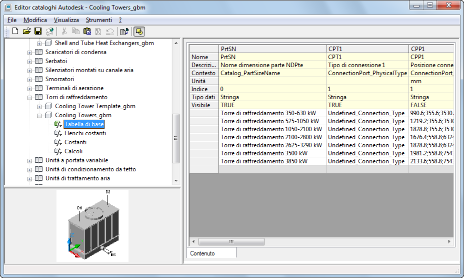 Nel seguente esempio viene mostrato il catalogo di parti multivista per impianti meccanici.