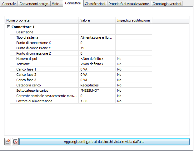 Nota: Se si utilizza uno script generato tramite il comando Scomponi dispositivi, per alcuni connettori può essere necessario specificare un valore in Posizionamento connettore. Per default nello script questa proprietà viene impostata su Specifica. È possibile selezionare:
