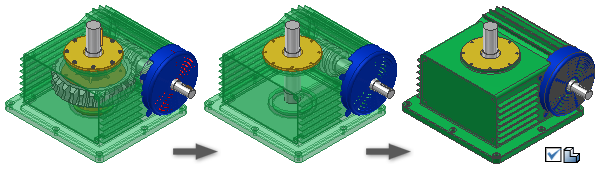 - Creare una rappresentazione semplificata dell'assieme modellando una parte o creando una parte derivata da un assieme. Salvare il file sul disco.