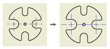 L'aspetto dei centri e delle linee d'asse nel disegno viene modificato di conseguenza per rispettare le nuove impostazioni di stile.