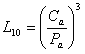 Per un singolo cuscinetto a rulli o un gruppo di cuscinetti a rulli apparentemente identici che operano nelle stesse condizioni, la durata utile associata con un'affidabilità del 90%, con materiali e qualità di produzione contemporanei e comunemente usati e nelle stesse condizioni operative. La stima della durata utile di base per cuscinetti a sfere radiali è data da