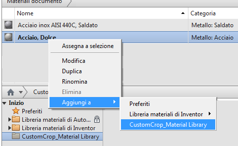 - Fare clic con il pulsante destro del mouse sul nodo Librerie di materiali e selezionare Aggiungi libreria.