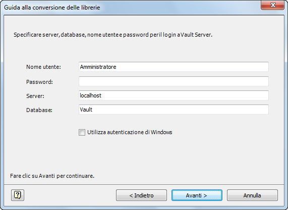- Fare clic sul pulsante [Successivo] per accedere al server del Vault. Vedere la figura 3.