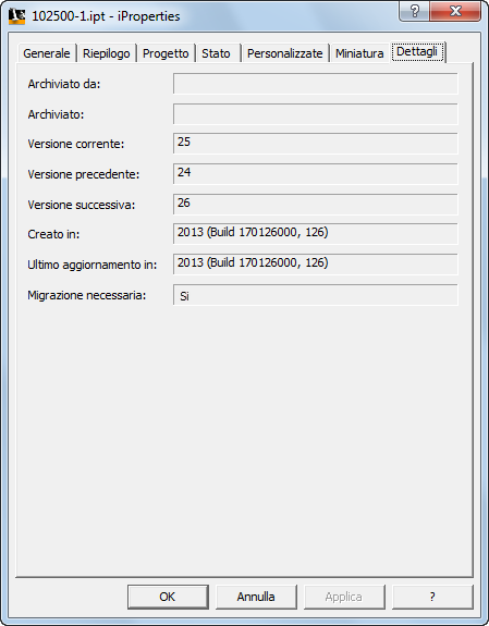 A partire da Inventor 2008, quando si apre un file e lo si salva in Inventor, viene eseguita la migrazione del file alla nuova versione.