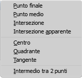 Finora gli unici punti di snap disponibili tramite il pulsante destro del mouse > opzione Snap punto erano Punto medio, Centro e Intersezione. Sono stati aggiunti i seguenti punti di snap: