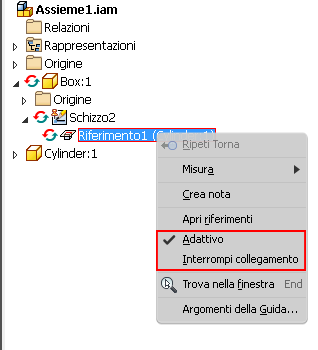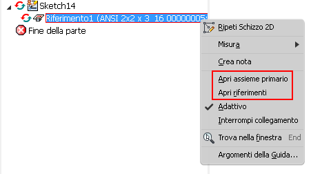 Oltre ai riferimenti in uno schizzo, la stessa funzionalità è disponibile per le geometrie di lavoro adattive per gli oggetti copiati.