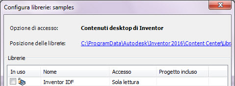 Con la release 2016 R2 (solo con Subscription), viene installata una nuova libreria del Centro contenuti per il componente IDF.