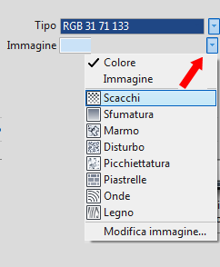 Quando si applica una texture a una parte, è possibile determinare in che misura il colore della texture la influenza. Tramite l'Editor aspetti è possibile specificare il valore di Dissolvenza immagine. Il valore di Dissolvenza immagine è un'impostazione di opacità per l'immagine di texture. Ad esempio, combinando una texture beige con valore di Dissolvenza immagine di 50 con un materiale blu si ottiene una miscela equivalente dei due colori.