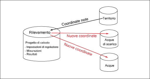 Il progetto di calcolo memorizza le misurazioni e le impostazioni per un singolo calcolo della regolazione. Tutte le misurazioni da elaborare in un'unica regolazione vengono importate in un singolo progetto di calcolo, in cui è possibile unire le misurazioni rilevate da strumenti diversi, ad esempio le misurazioni di tipo GPS e di tipo Tacheometro.