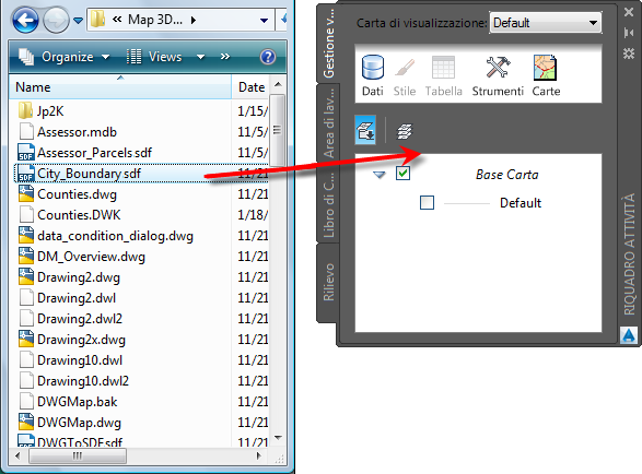 Trascinare il file dei confini della città in Gestione visualizzazioni.