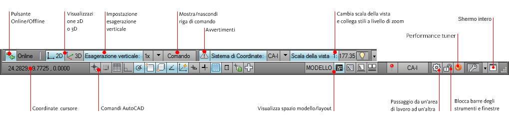 Le istruzioni relative al comando corrente sostituiscono alcune voci della barra di stato che vengono visualizzate solo durante l'esecuzione di un'operazione, ad esempio la pubblicazione o la stampa.