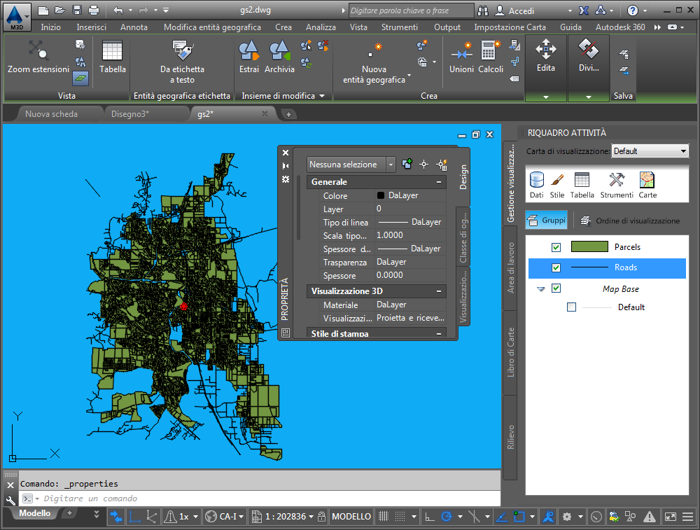 In primo luogo, acquisire familiarità con la finestra di AutoCAD Map 3D: