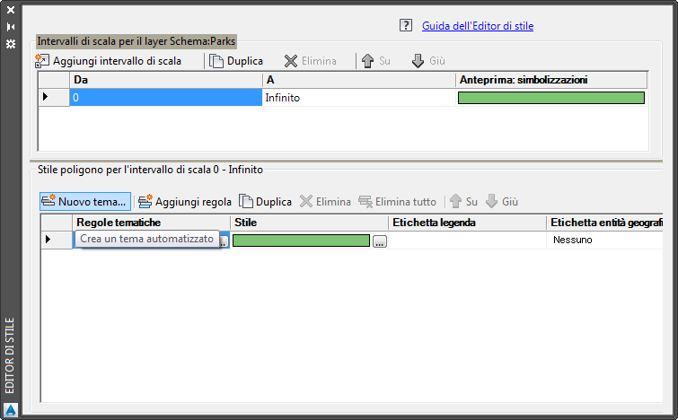 Fare clic su Nuovo tema per definire un tema per il layer Parcels.