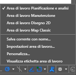 È possibile personalizzare un'area di lavoro esistente o crearne una nuova. È possibile salvare aree di lavoro diverse per attività diverse, utilizzarle per semplificare le operazioni più comuni o definire procedure ottimali per le funzioni di Cartografia e il flusso di lavoro.