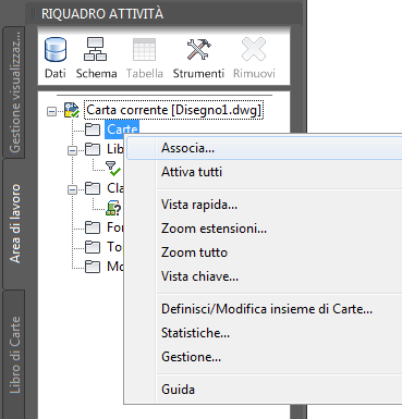 Associare le Carte dalla scheda Area di lavoro del riquadro Attività.